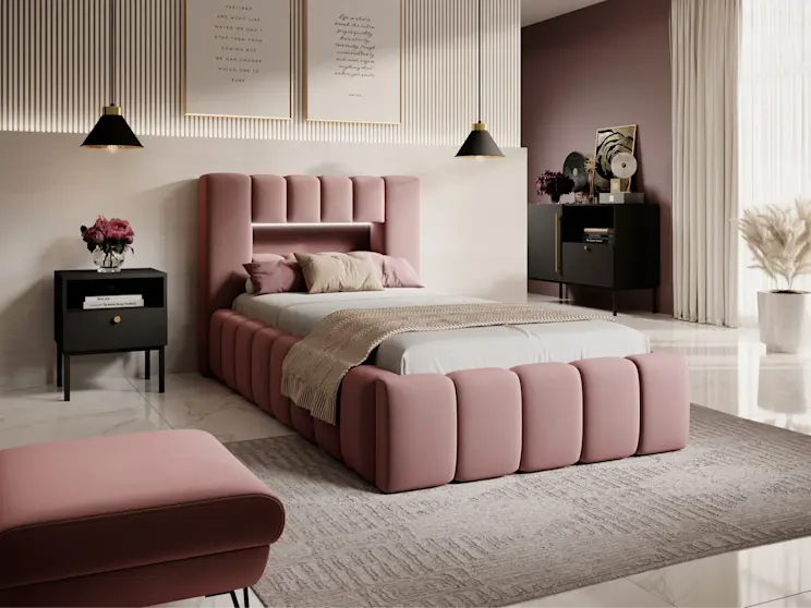 Łóżko tapicerowane 90x200cm z oświetleniem LED Lamica, Nube 24 różowy, cena: 2 329 zł