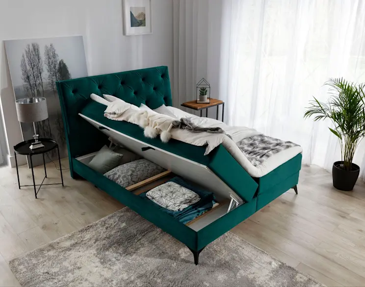 Łóżko kontynentalne Laos wyposażone zostało w pojemne schowki. Oznacza to, że pomoże Ci zadbać o właściwą prezencję Twojej sypialni, przechowując w sobie zarówno pościel, jak i wszystkie rzadziej używane drobiazgi!