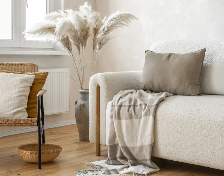 Dodaj tekstury: wprowadź tkaniny takie jak welur czy boucle w postaci poduszek czy tapicerki