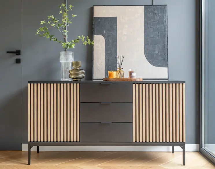 Komoda Meorati znakomicie komponuje się z większą i mniejszą ilością zieleni. Na jej przestronnym blacie możesz bez problemu ustawić doniczki z sukulentami, paprociami czy innymi roślinkami, dzięki czemu nadasz wnętrzu osobistego charakteru.