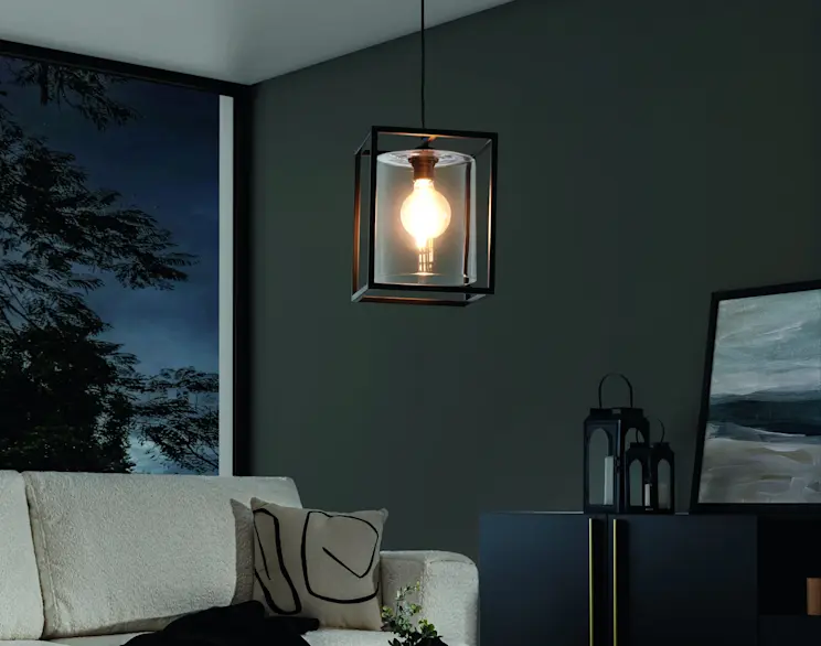 Lampa wisząca Olinto posiada odsłonięte punkty świetlne. Dzięki temu nic nie przysłania wydobywającego się z niej światła, pozwalając Ci garściami czerpać z jego koloru.