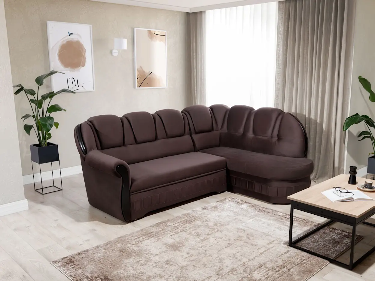Beżowy dywan Codrila to kluczowy element aranżacji salonu, gdy zależy nam na przytulnej przestrzeni. Nie tylko dodaje ciepła, ale także emanuje elegancją i subtelnym wdziękiem. W połączeniu z brązowym narożnikiem Lord dywan stanie się więc punktem, który podkreśla charakter wnętrza.